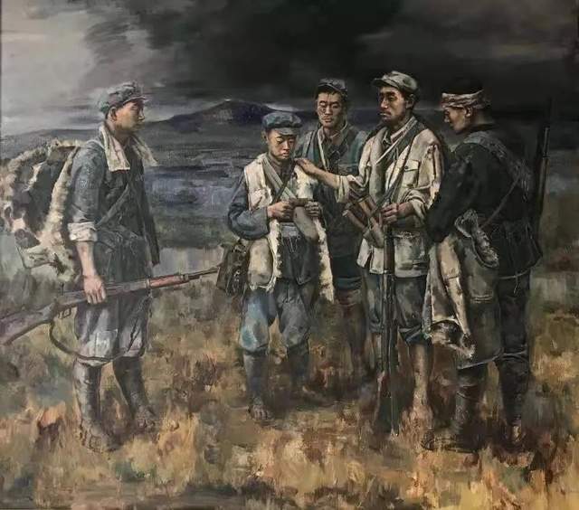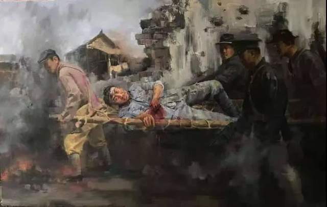 作为一位军史画家,周武发通过其创作的许多军事历史题材画作,追求的就是这种大于情节描述的形象真切感,从而使他的作品呈现出鲜活生动的个性。譬如,《邵家庄伏击战》是一幅主题性的情节绘画,但画家并没有刻意铺叙伏击战的前后情节,而是描绘伏击战最紧张激烈的阵地肉搏场面。画面塑造的那5位战士拼刺刀、耍大刀、描准射击和咬开引信投弹的不同动态形象以及被反压在地上的日军负隅顽抗的挣扎,仿佛带人进入了那个你死我活的拼杀现场。显然,此作的精彩不在情节与立意的独特构思,而在如何刻画和塑造这些形象的生动真实——从拼杀的动态到富有个性的表情刻画和服饰道具的考证等,无不体现了造型艺术追求视觉真实的特征,而且这些拼杀的神情与动作也克服了“摆拍”的人为设计感与舞台化效果。与《邵家庄伏击战》类似的《夜袭阳明堡》,也是直呈夜袭最激烈的战斗场面,并以战士射击投弹的各种动态感极强的形象让你感受战场的殊死搏斗,顽抗的日军也克服了概念化的描绘,刀刃上的生与死让你感受到战争的悲壮与惨烈。再譬如,描写红军会师的《胜利》,既没有恢宏的场面,也没有特定的情节,而是通过一群欢呼跳跃的红军战士形象让你体味那铁流汇涌的历史时刻。画面打动人的是那群欢呼跳跃的战士,没有固定程式化的姿态与表情,没有过多修饰性的神情动态,显示了画家试图捕获人物在随机的偶发动作中流露出的难以复制的真实感。画面中的战士也没有想象的那般威武,但作品却改变了过于理想化的人物形象选择与塑造,那种自然生活中的随意性成为画家寻找真实的突破口。
