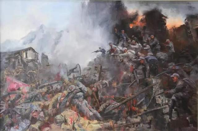 顽敌背水锋芒盛,硝烟滚滚黯长空。